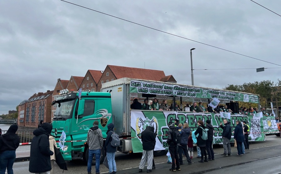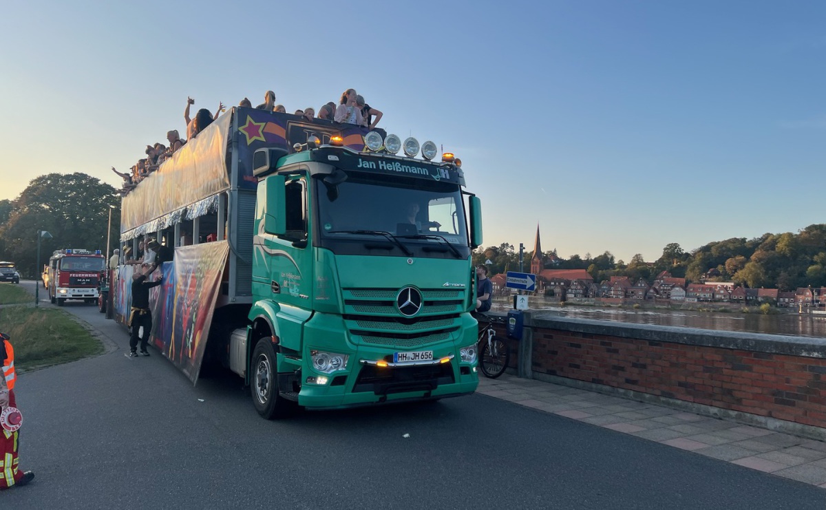 In diesem Fall boten unsere Paradetrucks eine eindrucksvolle Präsentierung und den nötigen Safespace für die Mannschaftsmitglieder.